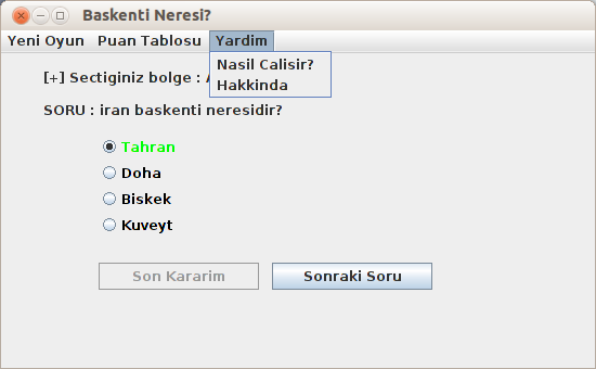 // Ülkelerin ismine göre ekler. “Amerika baskenti neresidir?” saçma oluyor. Ek olmayınca saçma duruyor. Son harflere göre bir ekler dizisi oluşturuluyor. Gelen ülkeye göre diziden gelecek eki bulan bir metot yazılır. Eğlenceli bir şeye benziyor.
