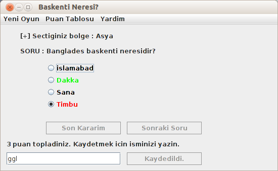 // Puanlama sistemi geliştirilebilir. Her soru 1 puan şu anda. Her ülke için vtnında puan değeri tutular. Yanlış cevaplanan bir ülkenin puanı bir artırılır. İşin içine bir de süre olayı katılırsa, cevapladığı süreye göre farklı bir yüzdeyle puan çarpılır mesela.