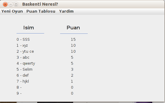 // Puanlama sistemi geliştirilebilir. Her soru 1 puan şu anda. Her ülke için vtnında puan değeri tutular. Yanlış cevaplanan bir ülkenin puanı bir artırılır. İşin içine bir de süre olayı katılırsa, cevapladığı süreye göre farklı bir yüzdeyle puan çarpılır mesela.
